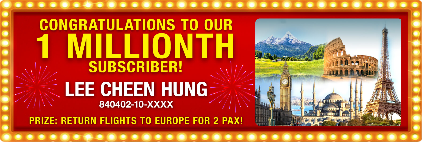 Leading up to this important milestone, we are giving away return flight tickets for 2 pax to Europe for the 1 millionth subscriber who signs up for CTOS self-check service. That’s not all! We are also giving away return flight tickets for 2 pax to Asian destinations, every 2 weeks!