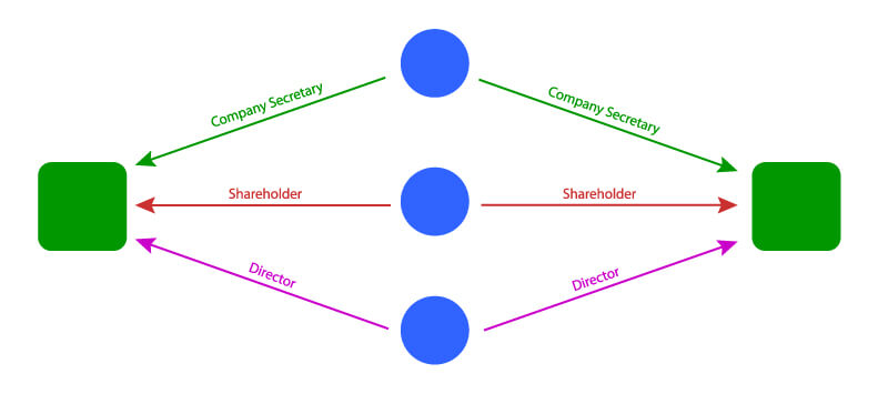 Probable Associates indicate persons and companies that have common connections with the search subject. For example, in the below diagram, if the search subject has three common connections to Company A, this means that there are three connecting lines from the subject to three separate entities that are linked to Company A.