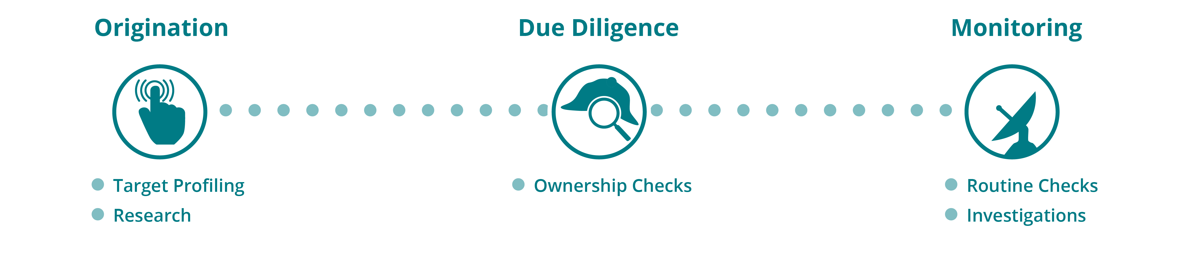 A good practice is to set your Alerts as you do your Origination or Due Diligence checks, and let our Alerts automate your post- transaction monitoring of counterparties.