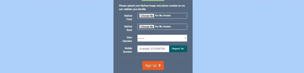 Kemudian, lampirkan imej (depan dan belakang) MyKad anda untuk mengesahkan butiran anda, dan masukkan nombor telefon bimbit anda.